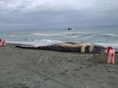 春节搁浅台东长滨外海蓝鲸,初步鉴定来自北印度洋类群。图片来源:海保署鲸搁浅考验...