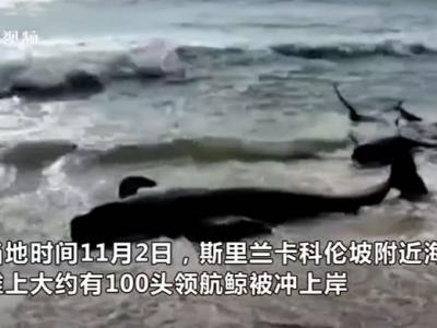 120头领航鲸(巨头鲸)在斯里兰卡科伦坡附近的帕讷杜勒海岸集体搁浅(蜘蛛网eeook....