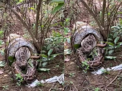 香港网友爬山时意外撞见树林间超大蟒蛇正