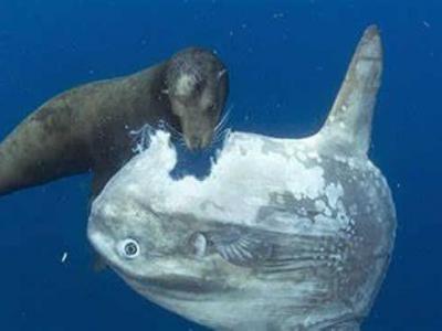 美国加州圣地牙哥外海翻车鱼被海狮硬生生