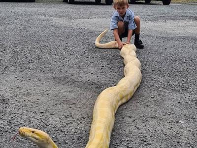 澳洲昆士兰黄金海岸奥克森佛发现长达5米罕见白化缅甸蟒蛇 捕蛇...