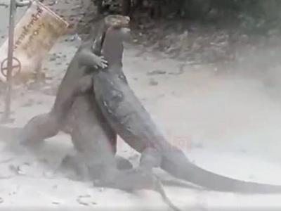 泰国喀比府直辖县Than Bok Khorani国家公园3只巨蜥疑为争地盘...