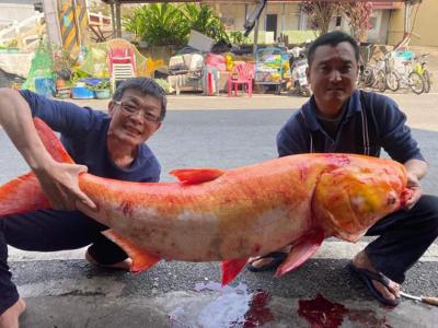 台湾嘉义渔民在曾文水库捕获到1.3米长“黄金大头鲢”(图/翻摄吴宗霖脸书)(蜘蛛...