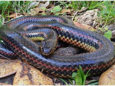 美国佛罗里达州行山客发现罕见彩虹大蛇