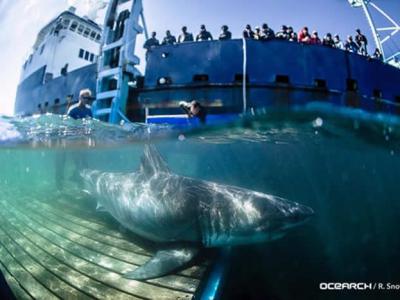 这只鲨鱼去年在加拿大新斯科舍省海岸附近被安装卫星定位(Photo: OCEARCH)(蜘蛛网e...
