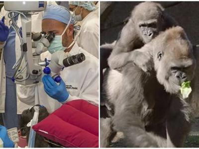 美国加州圣迭戈动物园大猩猩接受白内障手