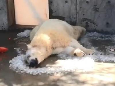 美国犹他州霍格尔动物园北极熊滚冰消暑 萌态可掬(蜘蛛网eeoo...