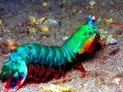 动物界的华丽杀手:雀尾螳螂虾Peacock mantis shrimp(蝉形齿指虾蛄Odontodactylus...