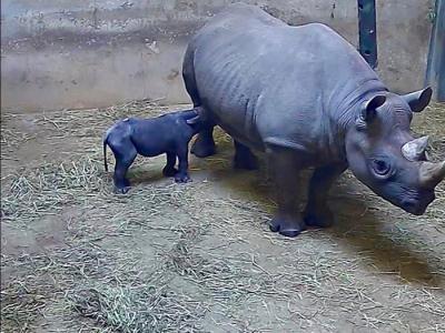 美国芝加哥动物园诞生一只珍稀东部黑犀牛