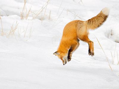 一只赤狐头朝下钻进雪地里捉老鼠。来源:Deby Dixon(蜘蛛网eeook.com)据康奈尔大...