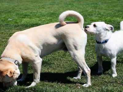 狗可以通过嗅另一只狗的臀部获得各种信息。(图片来源:周/盖蒂图片社)(蜘蛛网ee...