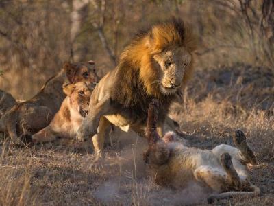 南非克鲁格国家公园狮群为争夺食物而厮杀
