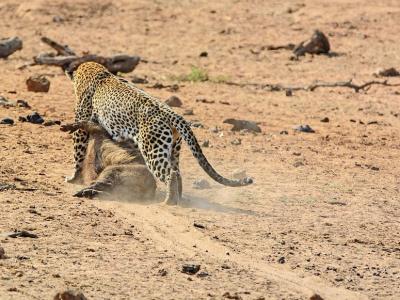 南非克鲁格国家公园内猎豹捕食熟睡疣猪