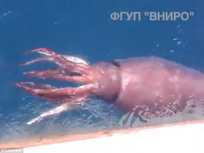 俄罗斯渔民捕鱼返航途中遇到深海巨型乌贼