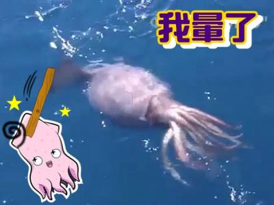 巨型乌贼游近俄罗斯渔船 水手鱼叉驱赶