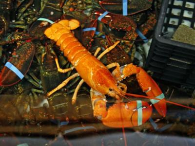 美国缅因州渔夫捕获罕见亮橙色龙虾