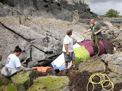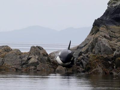 加拿大科学家和志愿者救助一头在不列颠哥伦比亚省北海岸礁石上搁浅的杀人...