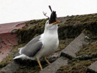 海鸥将八哥生吞 海鸥在屋顶突袭八哥 海鸥把鸟嘴一开,便把八哥锁死于口中。...