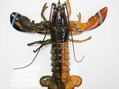 美国缅因州一家渔船公司收到一只十分奇特的双色龙虾 在自然界,这样的龙虾出现...