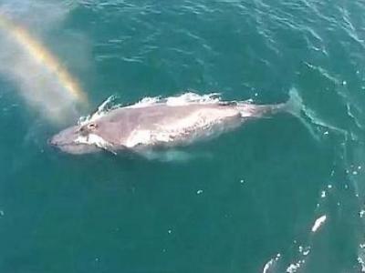 美国加州一头座头鲸浮出水面换气喷出彩虹 (蜘蛛网报道)据ETtoday:美国加州一...