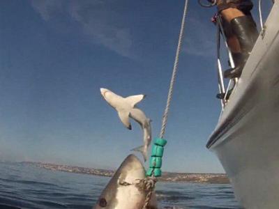 潜水员在南非莫塞尔湾抓拍大白鲨 另一条