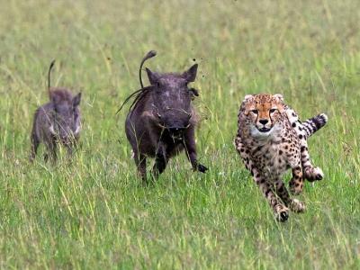 肯尼亚猎豹捕猎不成反被疣猪追赶