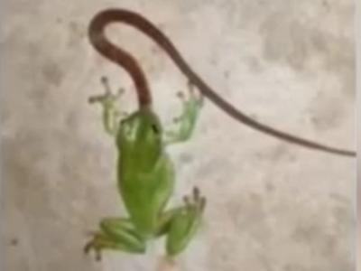 澳洲男子看见树蛙吃小蛇后施救 (蜘蛛网报道)据ETtoday:在自然界中青蛙的天...