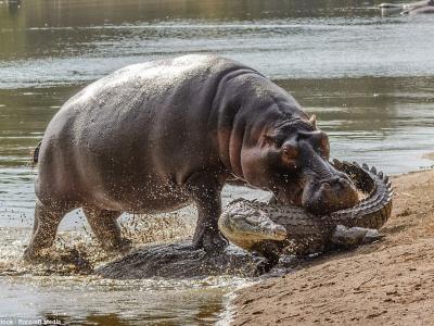 南非克留格尔国家公园河马妈妈狠咬想吃自己小孩的鳄鱼 (蜘蛛网报道)据...