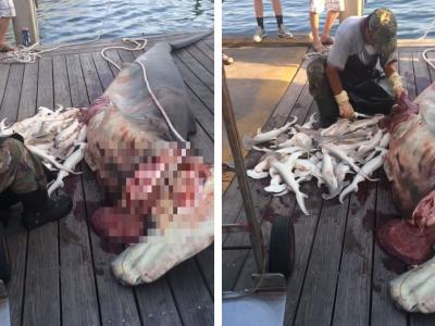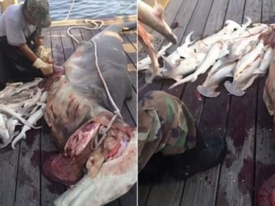 美国渔民误拖死双髻鲨 剖腹惊见34条小鲨鱼