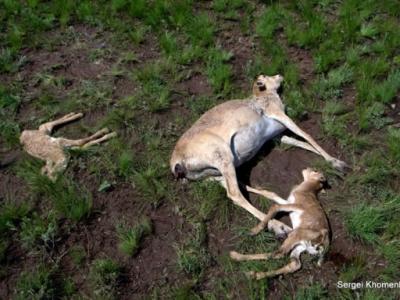生活在哈萨克斯坦的极度濒危赛加羚羊(高鼻羚羊)突然大批死亡(Sergei Khomenko...
