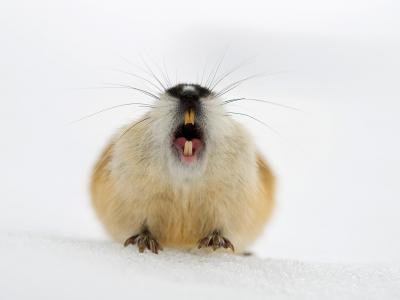 一只挪威旅鼠在挪威Vauldalen的春雪上头大声鸣叫。 Photograph by Nature Pictur...