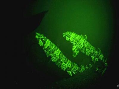 东太平洋绒毛鲨皮肤下的特殊荧光蛋白质使其能够发出一种明亮的绿色荧光 格鲁伯...