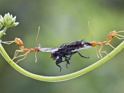 印度喀拉拉邦两只蚂蚁为相互抢夺一只苍蝇回巢陷入角逐 皮拉伊说两只蚂蚁似乎要...