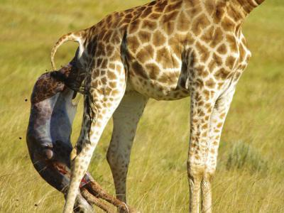 南非伊丽莎白港禁猎区野生长颈鹿宝宝从出