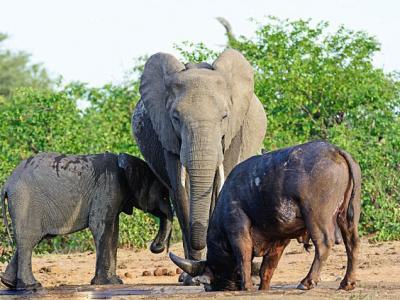 南非克鲁格国家公园大象不满被侵犯领地,用鼻子向公牛喷水 (蜘蛛网报道...