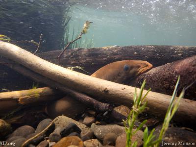 一只太平洋七鳃鳗在河里休息。鸣谢:杰里米·门罗,《淡水画报》(蜘蛛网eeook.com)...