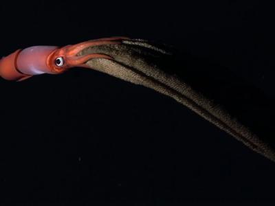 哥斯达黎加海域的视频中,黑眼乌贼像斗篷