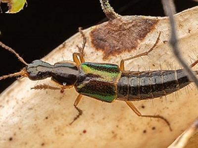 智利洛斯拉戈斯,奇洛埃的瓦尔代维亚温带雨林,Loncovilius edwardsianus在落叶中爬...