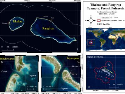 (A)法属波利尼西亚的土阿莫土群岛。(B) Tikehau和Rangiroa环礁。(D)图海阿瓦山口,...