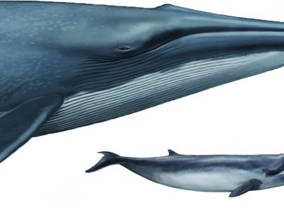 小露脊鲸和蓝鲸的图像,比较。提供者:Carl Buell(蜘蛛网eeook.com)据奥塔哥大学...