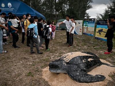 棱皮龟是世界上最大的海龟,由于栖息地的丧失、塑料污染和海龟蛋的消耗,棱皮龟在泰...