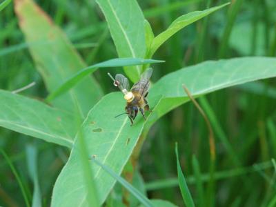 谐波雷达应答器附在蜜蜂的胸部。Credit: E Bullinger, U Greggers, R Menzel(蜘蛛...