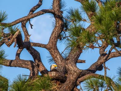 2023年2月8日,一只白头鹰占据了美国宇航局肯尼迪航天中心肯尼迪公园大道北附近的一...