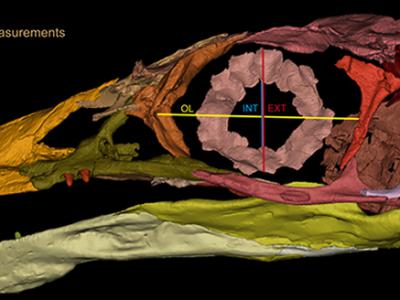 包含热河鸟的鸟类腭区及眶后骨对比图(胡晗供图)热河鸟STM3-8的脑颅部分三维模型截...