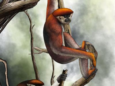 元谋小猿生活场境复原图(陈瑜 绘图)元谋小猿幼年上颌骨化石(蜘蛛网eeook.com)据...