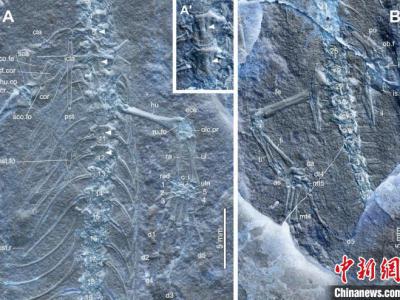 美丽莫旗蜥副型标本的肩带和前肢(A)、腰带和后肢(B)。中科院古脊椎所 供图美丽莫旗...