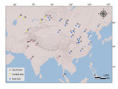 早始新世至早渐新世亚洲啮齿类化石分布。中科院古脊椎所供图(蜘蛛网eeook.com)据...