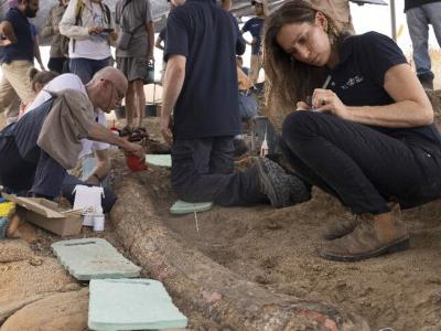 以色列南部出土保存完好古菱齿象象牙化石 追溯至50万年前(蜘蛛网eeook.com)据东网...