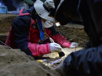 张东菊在考古发掘中白石崖溶洞张东菊在青海湖的发掘工地附近,她说风景美极了。(蜘...