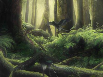 热河鸟生态复原图。韩志信、王一凡 绘图 摄热河鸟的头骨三维重建及复原模型。胡晗 ...